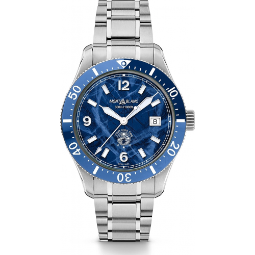 Pierwszy w historii sportowy zegarek do nurkowania dla Montblanc, Montblanc 1858 Iced Sea Automatic Date wyposażony jest w tarczę ze wzorem lodowca, która sprawia wrażenie, jakby zaglądała w głąb lodowca. Ta niebieska tarcza z motywem lodowcowym jest inspirowana Mer de Glace – Morzem Lodu – głównym lodowcem masywu Mont-Blanc. Jego teksturę uzyskano przy użyciu prawie zapomnianej pradawnej techniki zwanej gratté-boisé. Zegarek jest wyposażony w jednokierunkową dwukolorową ceramiczną ramkę, grawerowany dekiel i zwężającą się wymienną bransoletę ze stali nierdzewnej z precyzyjną regulacją dla precyzyjnego dopasowania. Zegarek jest zgodny z normą ISO 6425 dla zegarków nurkowych i jest wodoodporny do 300 metrów.