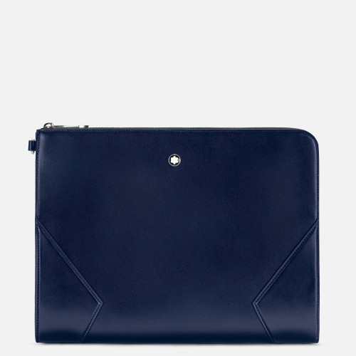 Zainspirowane kulturą pisania, portfolio Meisterstück to inteligentny codzienny zestaw na każde spotkanie. Wykonane z nowej, głęboko błyszczącej skóry Ink Blue, wszystkie detale mówią językiem stalówki: przeszycia, suwak przypominają kształt stalówki, esencję Montblanc. Większa wersja logo rozświetla torbę.