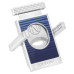 Obcinacz do cygar ze stojakiem ozdobiony jest niebieskim lakierem i wygrawerowanym logo Nautilus, wykończenie chromowane i błyszczące.