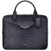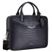 Ta czarna torba na ramię, idealna do codziennego użytku, wykonana z naturalnej skóry cielęcej imitującej skórę krokodyla, z wytłoczonym wzorem krokodyla, jest ręcznie patynowana. To idealny, funkcjonalny dodatek dla nowoczesnego biznesmena.