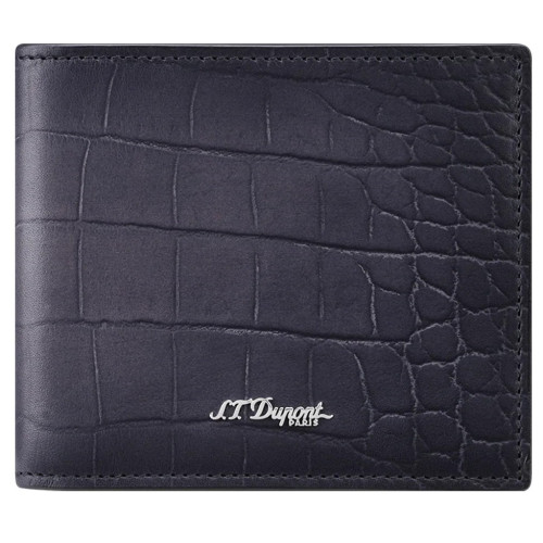 Ten portfel, wykonany z cielęcej skóry w całości z fakturą skóry krokodyla, z wytłoczoną patyną w kształcie krokodyla, oferuje wyjątkowe odcienie czerni.