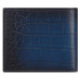 Ten portfel, wykonany w całości ze skóry cielęcej imitującej skórę krokodyla, z wytłoczoną patyną imitującą skórę krokodyla, ma wyjątkowe odcienie niebieskiego.