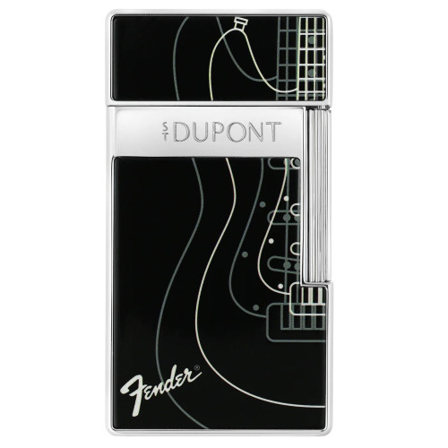 Po raz drugi S.T. Dupont i Fender® współpracują, aby stworzyć linię rockową łączącą wiedzę fachową obu firm. Zapalniczki Biggy, Slimmy i Twiggy, a także długopis Initial, przyjmują sylwetkę Stratocastera® na czarnym lakierowanym tle. Zapalniczka Fender® Biggy. Niebieski płomień palnika 2 cm.