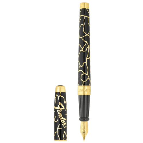 Duże czarno-złote pióro wieczne Kintsugi Line D Eternity ze złotym brokatem. Złote wykończenia.