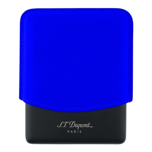 Ekskluzywne etui na papierosy. Wykonane z cielęcej skóry w fluorescencyjnym niebieskim kolorze, z matową czarną metalową podstawą. Kolekcja Fluo wnosi nową energię do klasyki S.T. Dupont – legendarny lak staje się popowy i lekki, dla życia zawsze w ruchu, dynamicznego i pulsującego.